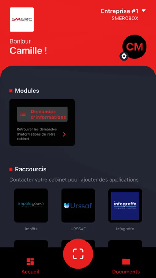 L'application SMERCBOX permet aux utilisateurs de scanner leurs documents depuis leur smartphone et de les envoyer directement sur la plateforme.