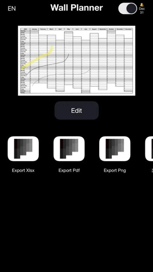 • You can organize your full year on one page. Export one of the templates and print it on a large paper (A3, A2, A1, A0 etc.) then hang it on your wall.