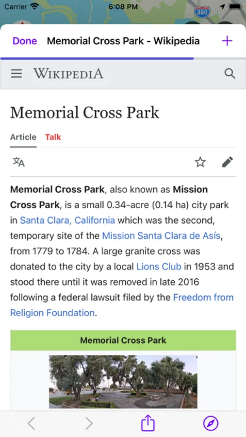 Thanks to the connection to Wikipedia, you can easily read the Wikipedia article for the places.
