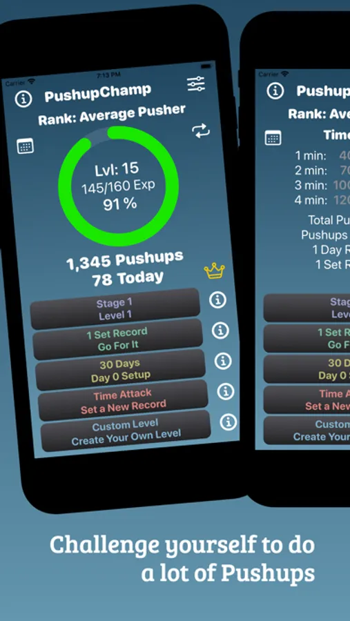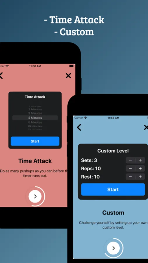 Want to finish off your chest workout by doing 3 sets of 20 reps with 1 minute rest in between? Or maybe you would like to do 10 sets of 10 reps with 30 seconds rest? Build your own level in this mode to fit your skill level.