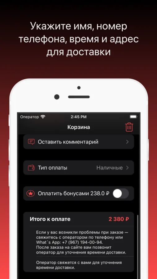 На экране заказа добавьте свою контактную информацию для первого заказа: Имя, Номер телефона и адрес электронной почты, чтобы получать уведомления об оплате.