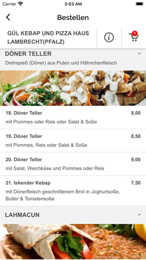 Wir von Gül Kebap und Pizza Haus Lambrecht bieten Gerichte von hervorragender Qualität und laden Sie herzlich ein, unsere köstliche Küche kennenzulernen. Der Schlüssel zu unserem Erfolg ist einfach: Wir bieten hochwertige Gerichte, die stets den Gaumen erfreuen. Wir sind stolz darauf, unseren Kunden schmackhafte und authentische Gerichte zu servieren. zB.: . Genießen Sie wahre Gaumenfreuden. Wählen Sie dazu ein Getränk aus. Und vor allem: Entspannen Sie sich! Wir bedanken uns herzlich bei Ihnen für Ihre fortwährende Unterstützung.