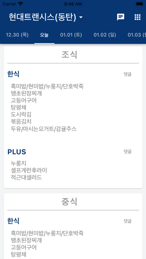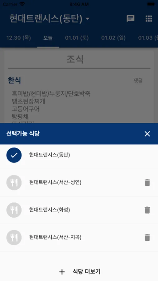 앱을 열자마자 현재 시간 식당 메뉴를 바로 알수있습니다