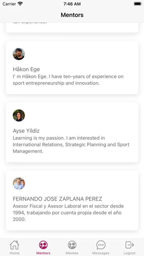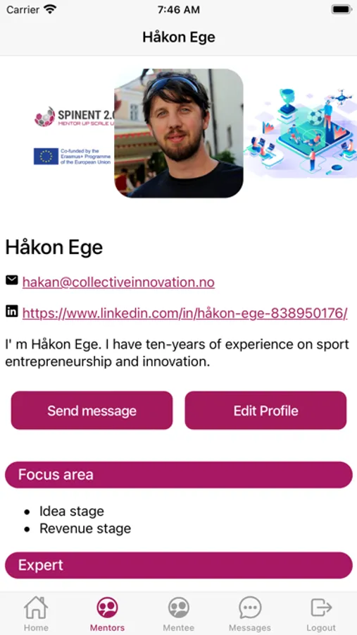 Sportstech Mentor was created for young entrepreneurs focused on sports technology to receive service from experienced mentors. Users can create their own accounts, configure their profiles according to their interests, and define the details of their projects. They choose a mentor that suits their needs and can get in touch.