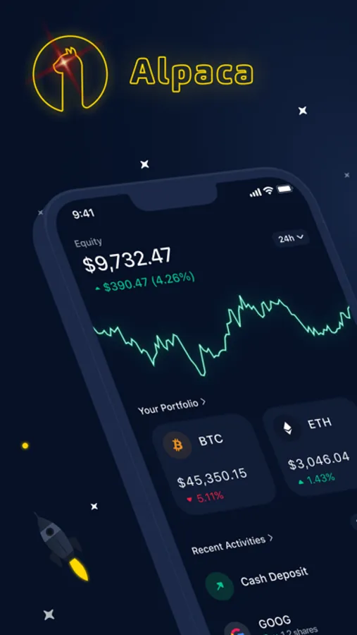 Trade crypto, buy stocks, and manage your algos on the go with the Alpaca mobile app. Invest in over 8,000 stocks and ETFs with Alpaca Securities. Buy and sell over 20 cryptocurrencies including Bitcoin, Ethereum, Solana, Avalanche, and Dogecoin with Alpaca Crypto.