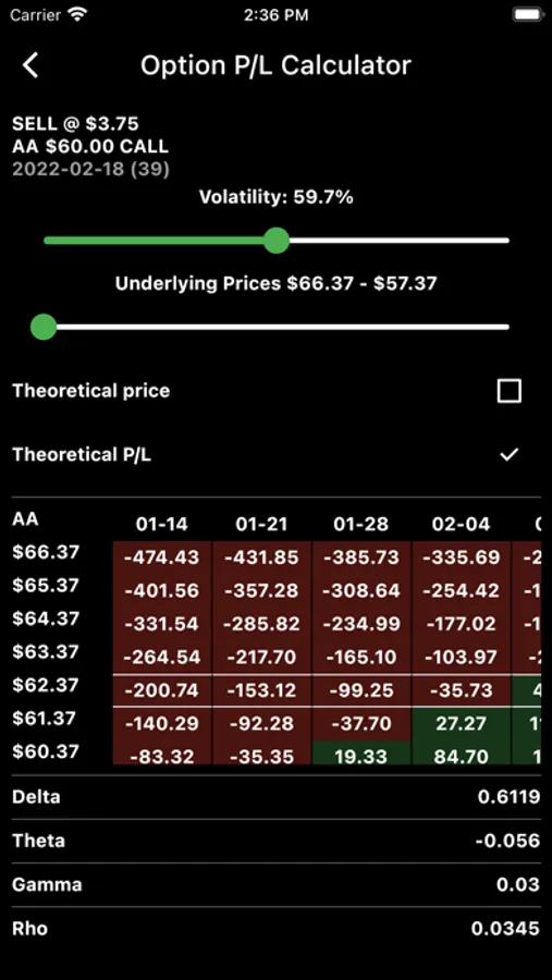 Track the cost basis when using any options strategy and instantly see a complete profit analysis with theoretical option prices, break-evens, and more!