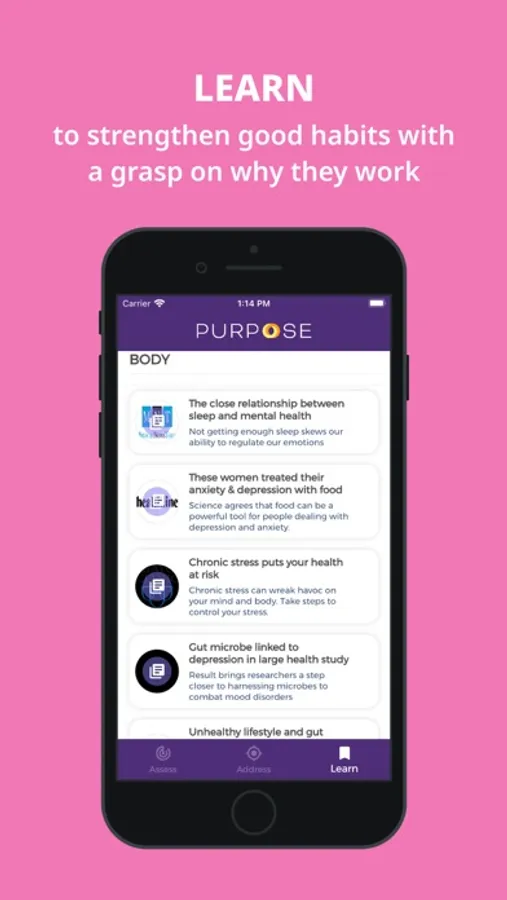 The Purpose Health app is here to help. Designed with the science of mood measurement & well-being, our app helps you navigate your mental wellness journey with tools to: