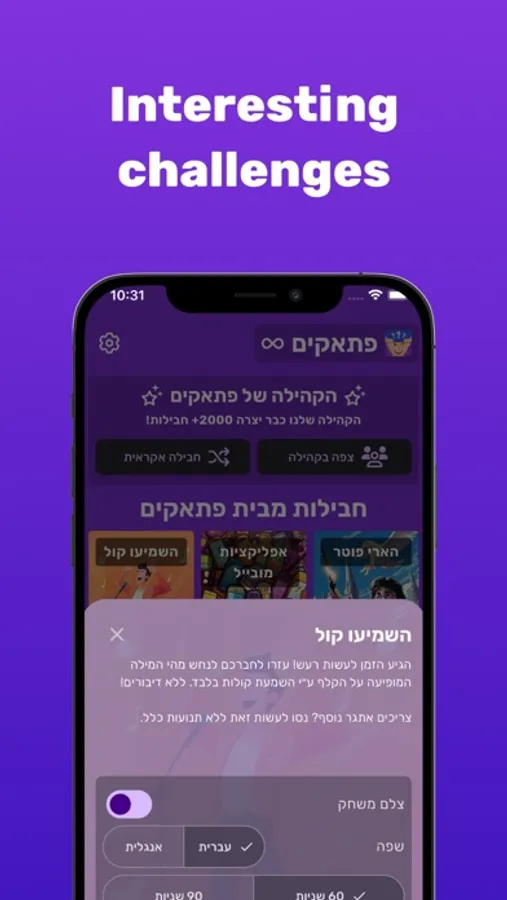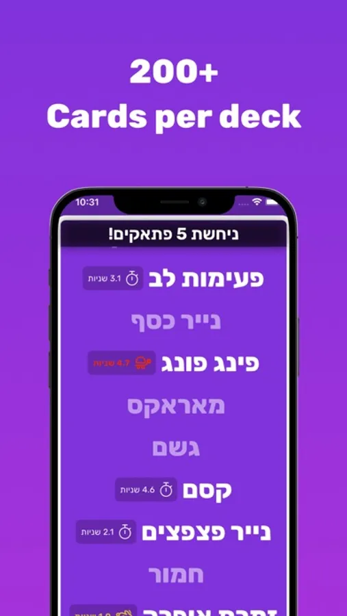 In Ptakim, you will have to guess which word appears on your forehead, with the help of your friend's hints, before the time runs out!
