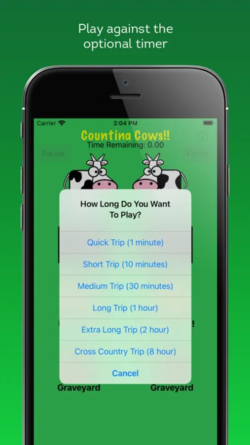 The app uses special moo sounds recorded from real cows and each side has its own moo cow moos. But, watch out! If you pass a graveyard on your side, then all of your cows go bye-bye and you start over.