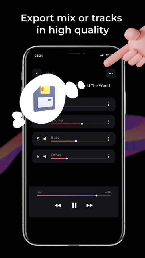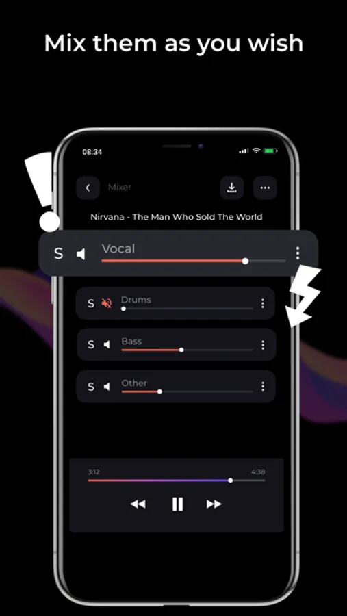 With unMix you can separate song into isolated tracks easily. The results quality is very high, because it uses new high-quality trained AI, which gives much better result than the other apps, because most of other apps uses old, low quality AI technology.