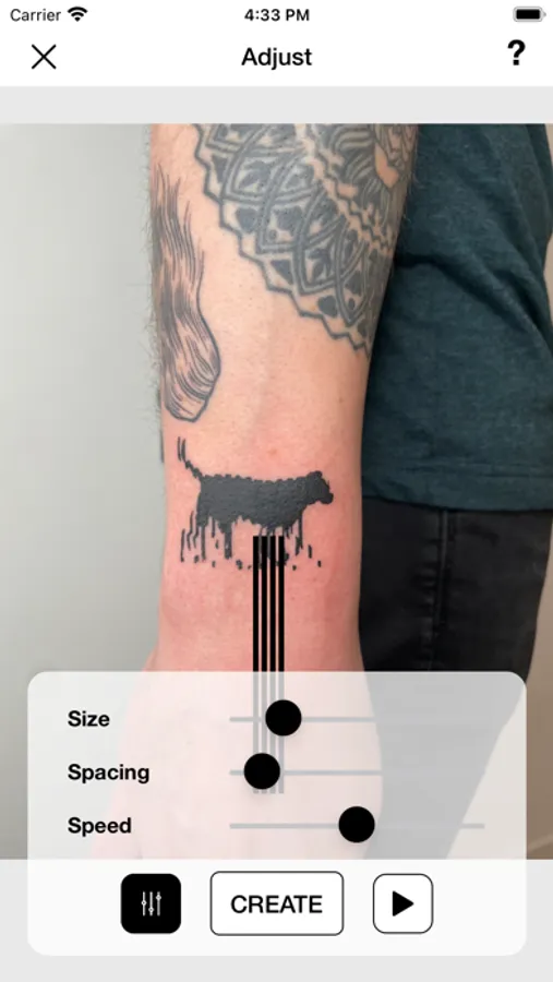 All you need is to simply take a picture of your tattoo and you will adapt the grid to your tattoo and see it turning to life on your phone. In one clic you will create a video of your animated tattoo and be able to send it to your friends.
