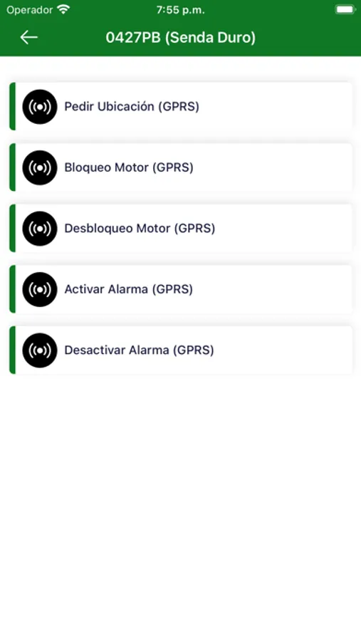 * envío de comandos de bloqueo/desbloqueo de motor desde el app