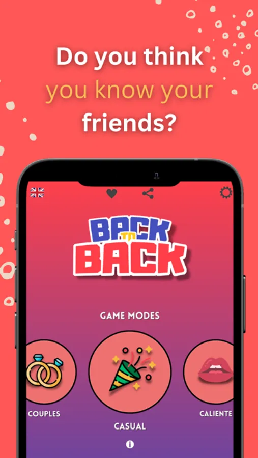 Back to Back is a brand new and original party game that will take your parties to the next level! Two people in your group stand back to back and the game will pitch them against each other in a series of daring and fun questions!