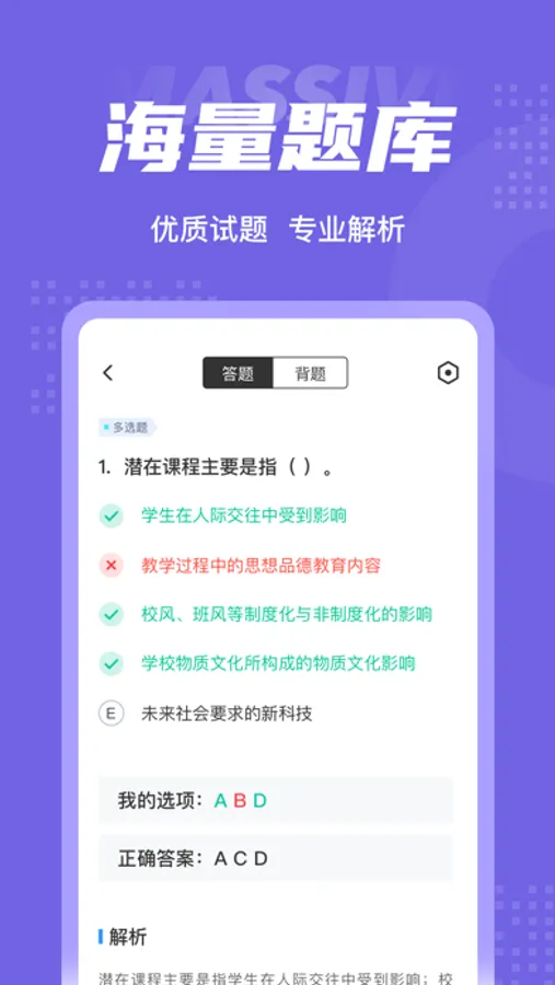 家庭教育指导师题库新增搜题功能,家庭教育指导师考试中的疑问一搜便知,更支持语音和拍照搜题。