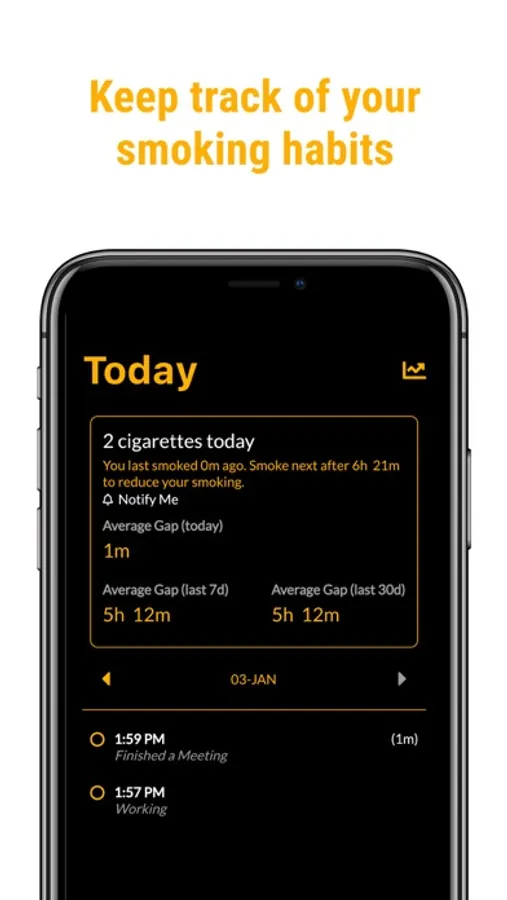Quitting smoking is hard, we know! Or maybe you don't want to quit, but just keep it under control. Either way, the first step is to understand how much you smoke and what triggers your cravings. Break Free tracks your smoking habits and provides you with a better understanding of your smoking patterns.