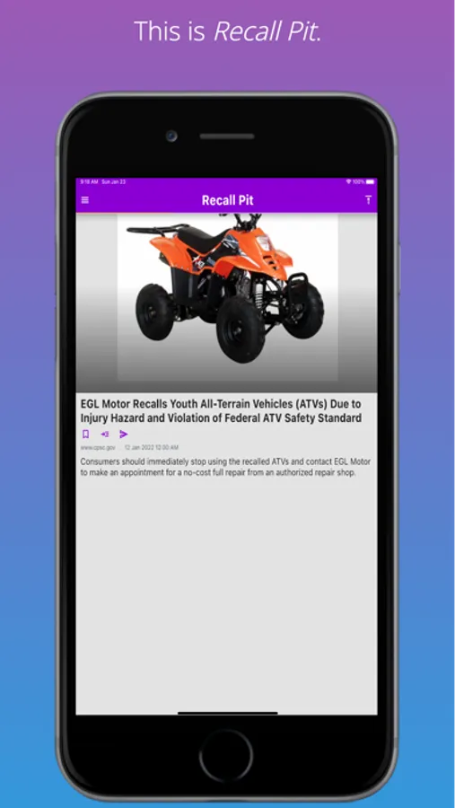 Recall Pit is the place where recalled products of all types from the FDA, CPSC, and USDA are located at the tips of your fingers. Items are formatted such that one can simply scroll through products that have been recalled.