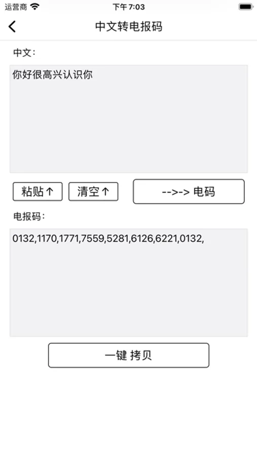 在本APP中你可以体验中文电报码查询、转换、历史记录等功能,喜欢的话分享给你的好友吧。