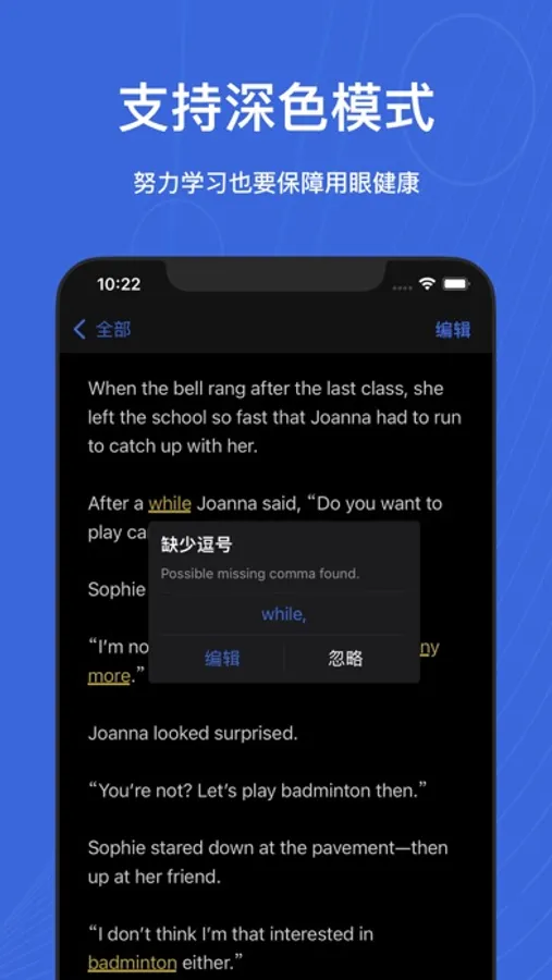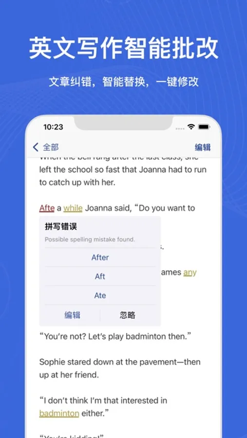 借助强大的智能算法,实现英文文章的实时修改,功能包括: