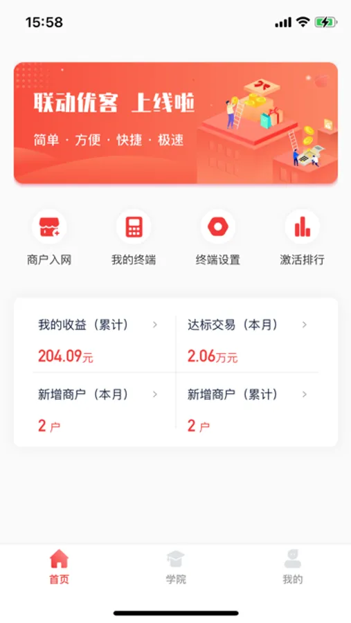 联动优客是一款服务于商户/服务商的APP,通过APP可以进行身份认证、人脸认证、交易查询、收益查询、终端绑定、磁条卡认证,联动优客致力于给用户带来更安全更便捷的使用体验