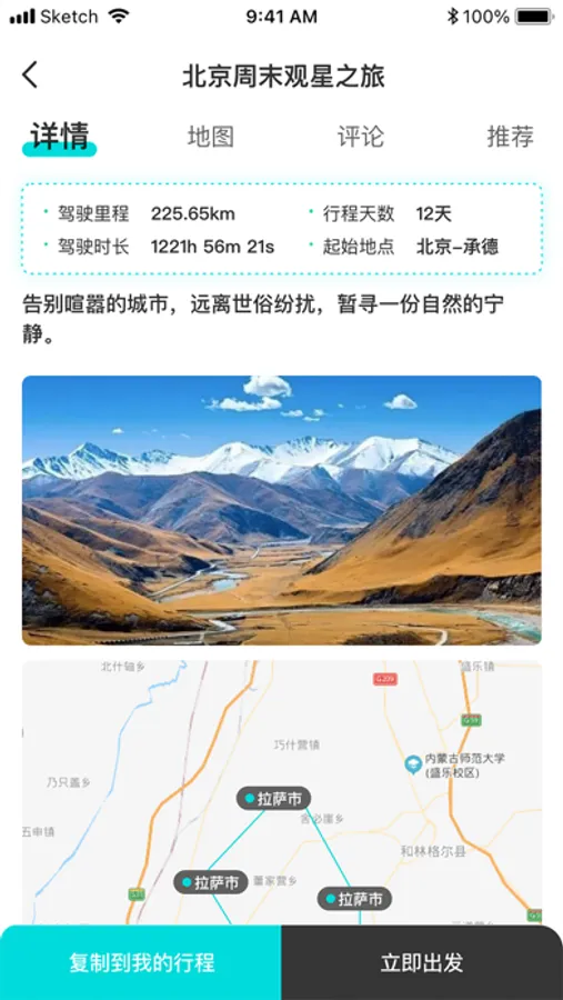 想自驾游玩,不知道该去哪?不知道路线怎么走?不知道行程怎么安排?逍遥自驾游——是一个为自驾游爱好者服务的行程规划和导航工具。使用逍遥自驾游你可以:制作、编辑自驾游路书可以分享或使用别人分享的路书可以发表评论、点赞、收藏路书选择路书,一键导航让自驾游更简单、无烦恼逍遥自驾、即刻启程!