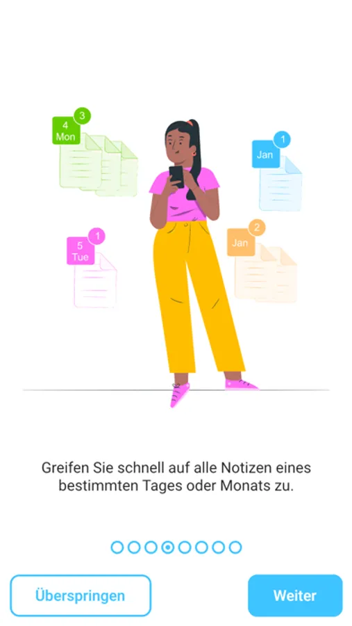 You can quickly access notes for a specific day or month, and you can also easily filter notes by tags.