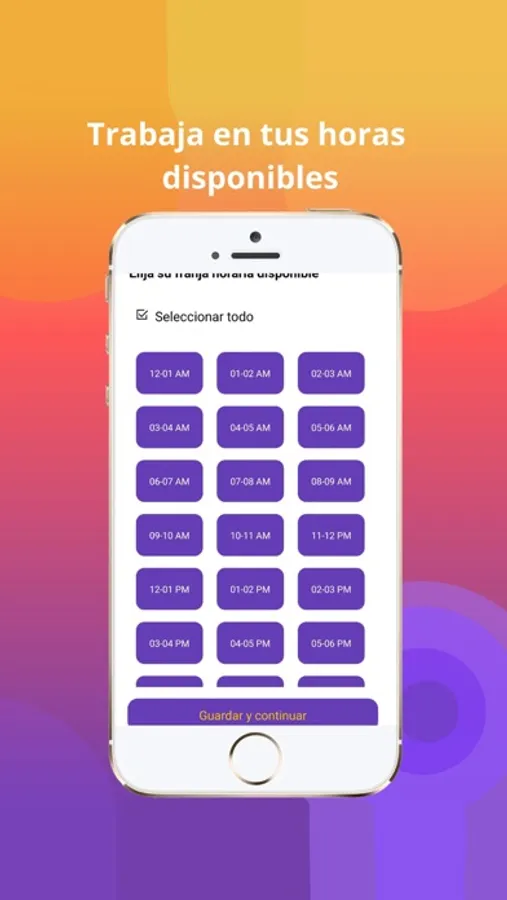 - Selecciona los horarios y días en los que quieres trabajar (No olvides que puedes modificarlos cuando gustes).