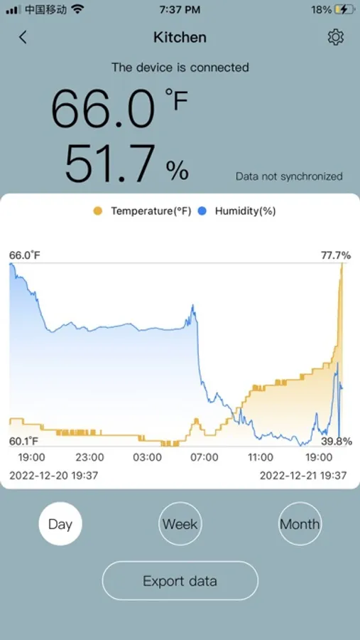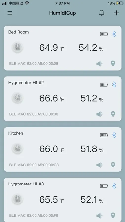 HumidiCup APP is to enable users to view the data and status of the HumidiCup wireless hygrometers through their mobile phones. Obtain real-time data and historical data of the hygrometers, manage and set the HumidiCup wireless devices. Manual calibration and auto-calibration keeps high accuracy. The intuitive historical data curve and data download facilitate users to view the data and fluctuations in a time period. The alarm settings enable suers to set the alarm value for temperature and humidity.