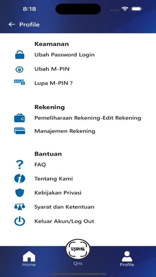 22. Pengaturan (Ubah Sandi, FAQ, Tentang Kami, Privacy Policy, Syarat & Ketentuan)