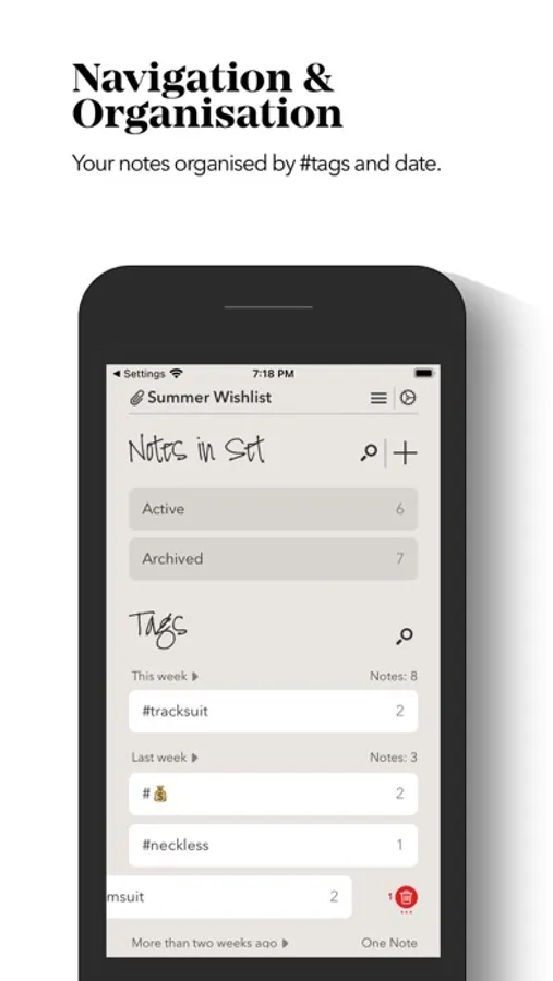 Organise your notes by tags.