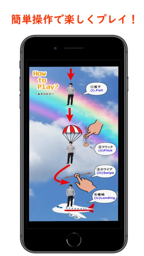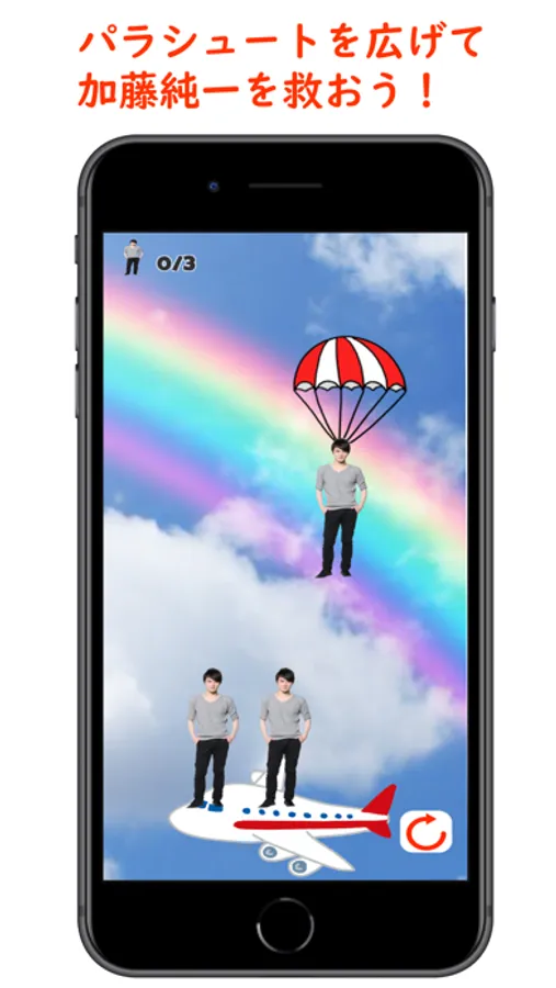 パラシュートを広げた後は、スワイプ操作で左右に移動できるので、救出地点となる飛行機に誘導するだけ!