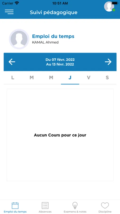 - Emploi du temps, notes et discipline