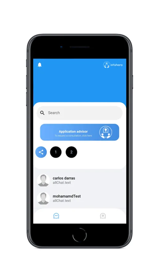 "Istishara" is a chat application where you can contact a specialist to consult with on your problem and will answer your questions, you can also chat with with other people who are benefiting from this app.