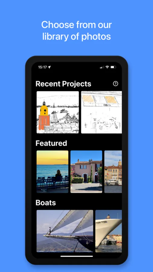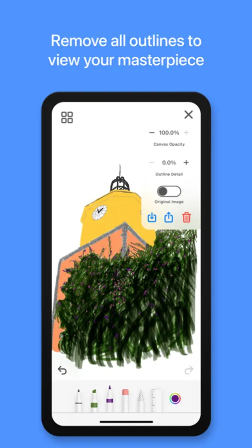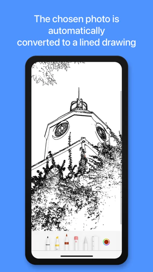 When you select an image, it will automatically convert into a lined drawing for you to bring to life.