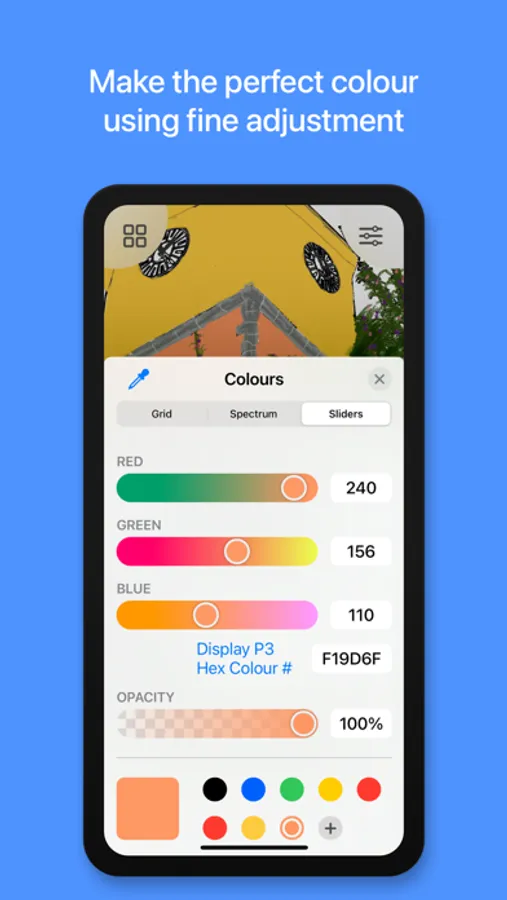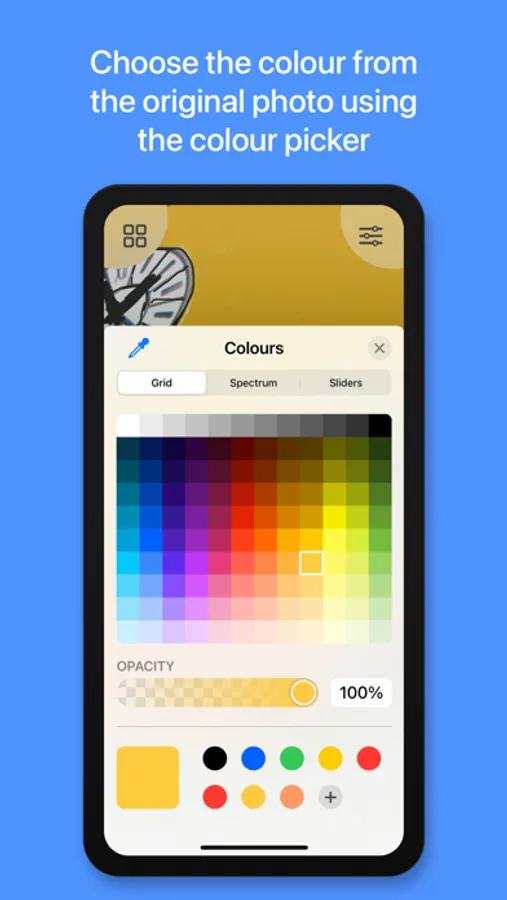 • The original photo can be selected to appear in the background to help you see more detail and choose colours, with the help of our colour picker.