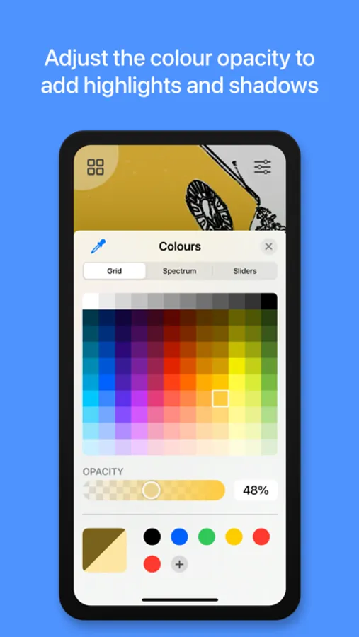 • Colour opacity can be adjusted to add highlights and shadows.