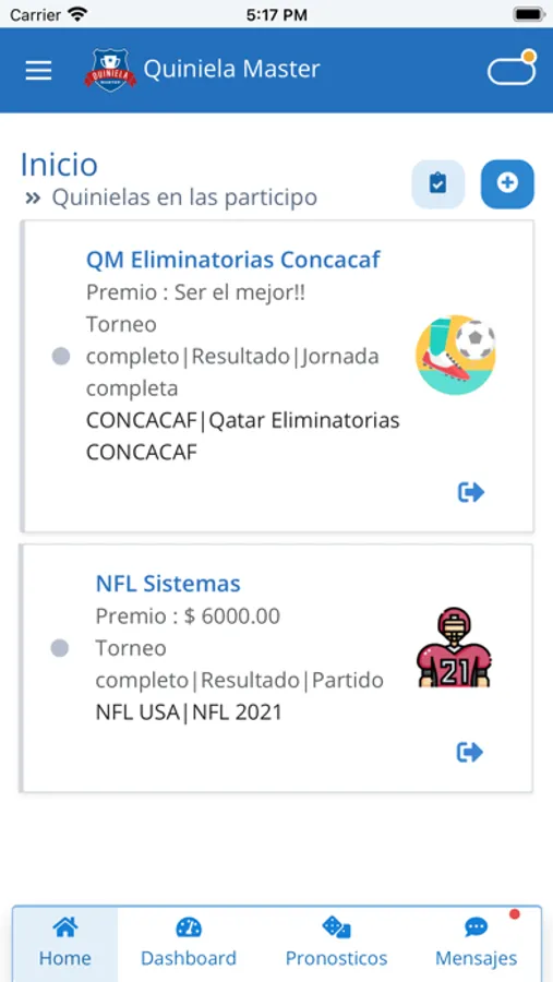 "Quiniela Master" es una aplicación creada para que vivas al máximo tu pasión por los deportes, invita a tus amigos a participar y diviértanse!!!