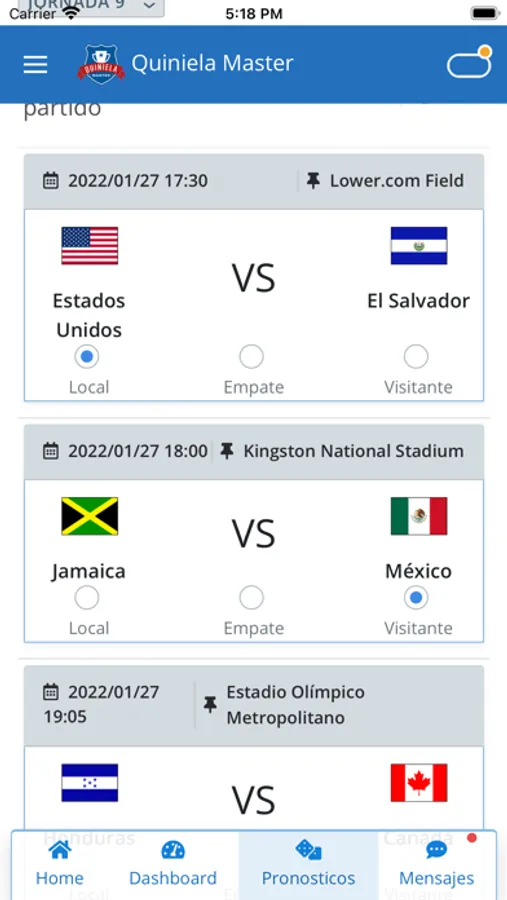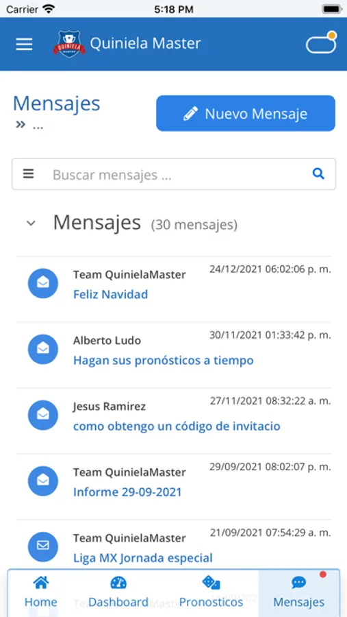 • Envía mensaje a tus amigos que participan en tu quiniela