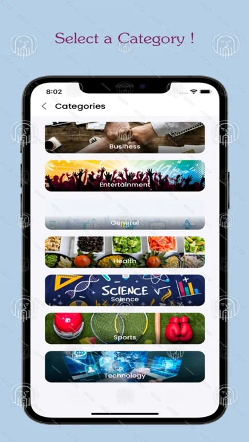 Select Category - You can choose any category of your interest like Business, Health, Science, Sports and many more.
