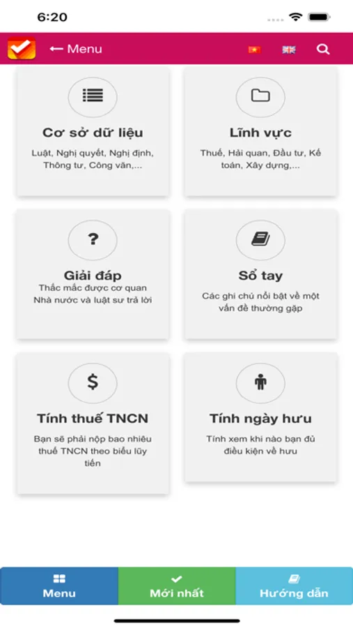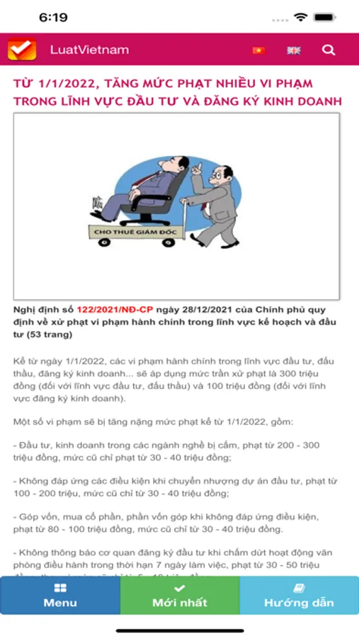LuatVietnam có 2 giao diện Việt ngữ và Anh ngữ. Hãy nhấp vào biểu tượng cờ Việt Nam để xem bản Việt ngữ hoặc cờ Liên hiệp Anh để xem bản Anh ngữ.