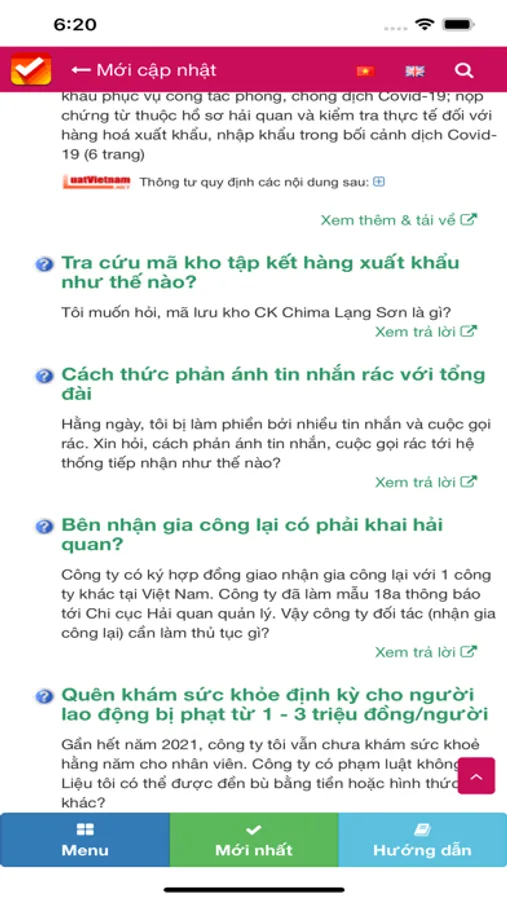 Trong bản Việt ngữ, bạn có thể xem được các giải đáp, tư vấn, sổ tay LuatVIetnam.
