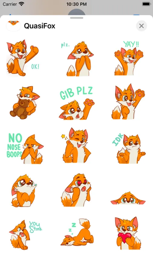 A large collection of stickers depicting different actions, emotes, etc. of the Quasi Fox character. Made available on the App Store for all to enjoy!