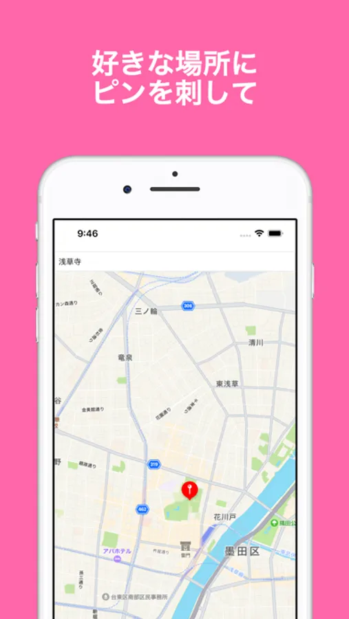 1. 地図を長押しでピンを立てる