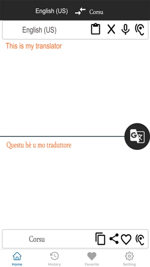 * Corsican To English Translator And English To Corsican Translation is the most powerful translation tool on your phone. translate any sentence or phrase into any destination language, and enjoy a set of useful add-on features such as text-to-speech, and integrated social media support.