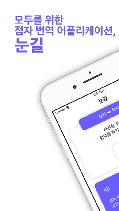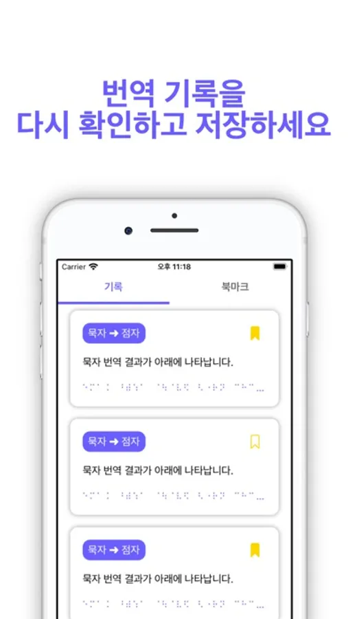 묵자는 직접 휴대폰 키보드로 입력해서 점자로 번역한 결과를 확인할 수 있습니다.