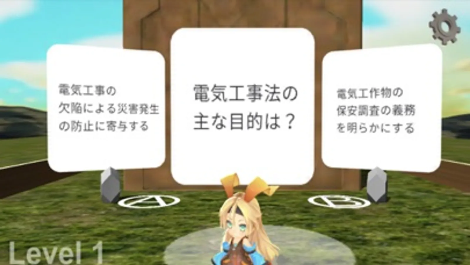 キャラクターを操作して二択の問題を解いていきます