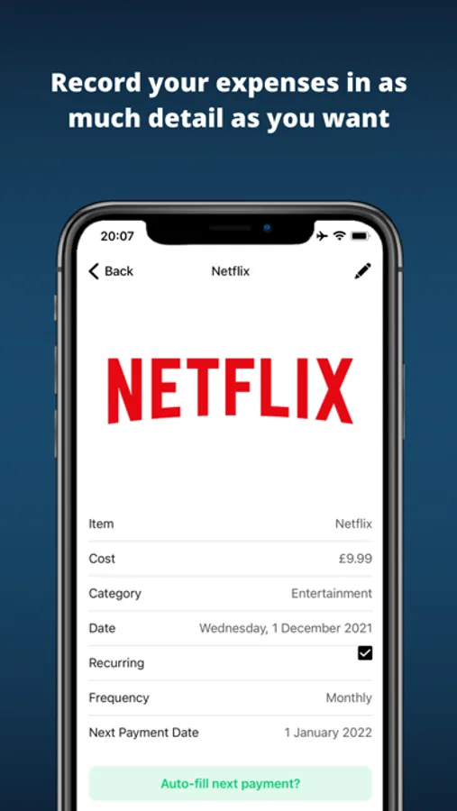 The spending tracker feature on Budget by Koody gives you total control over your budget so that you can account for every transaction in as much detail as you'd like. You can enter your own personalised titles, input specific amounts down to the penny, store your receipts digitally and add personal notes to each manual transaction.
