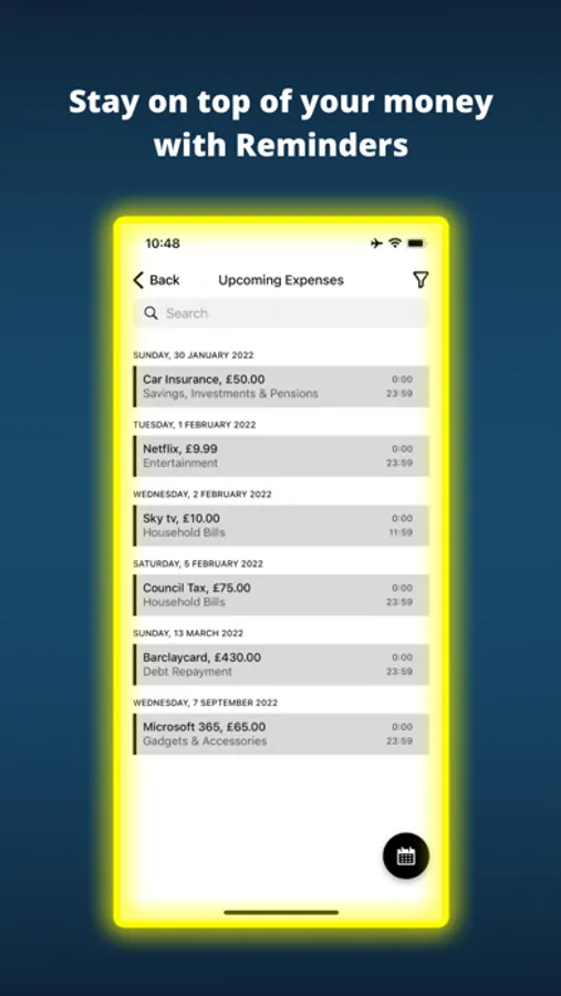 Filter your expense reminders by date for ease of access, or simply track them all in one place.