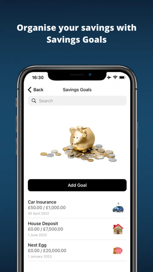 A savings goal can make it easier to put money aside on a regular basis. Budget by Koody allows you to set as many savings goals as you wish and log all savings towards each goal.