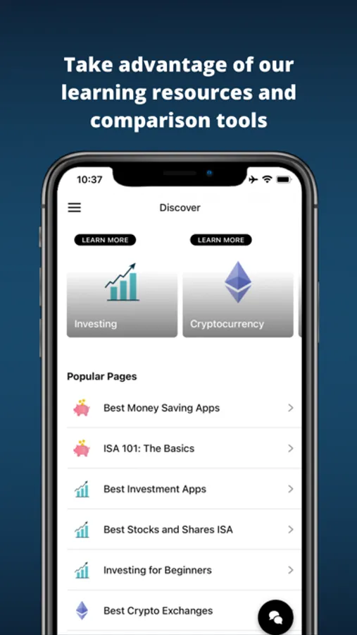 Use Budget by Koody's handy 'Discover' tab to access a host of personal finance resources and guides. Learn about Investing, Pensions, Savings, Cryptocurrencies and more to keep informed and kickstart your journey towards financial freedom.