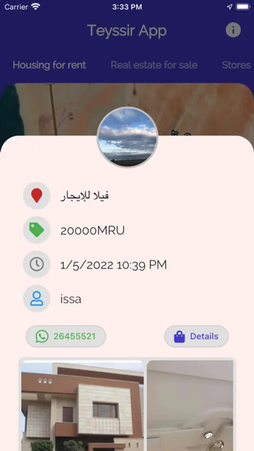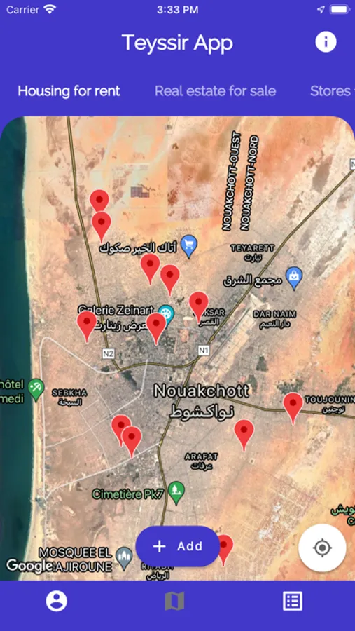 يهدف تطبيق تيسير إلى تسهيل البحث عن العروض العقارية والمشاريع التجارية في موريتانيا من خلال تحديد المواقع على الخريطة وإظهار أهم عروضهم مع إمكانية التواصل معهم.